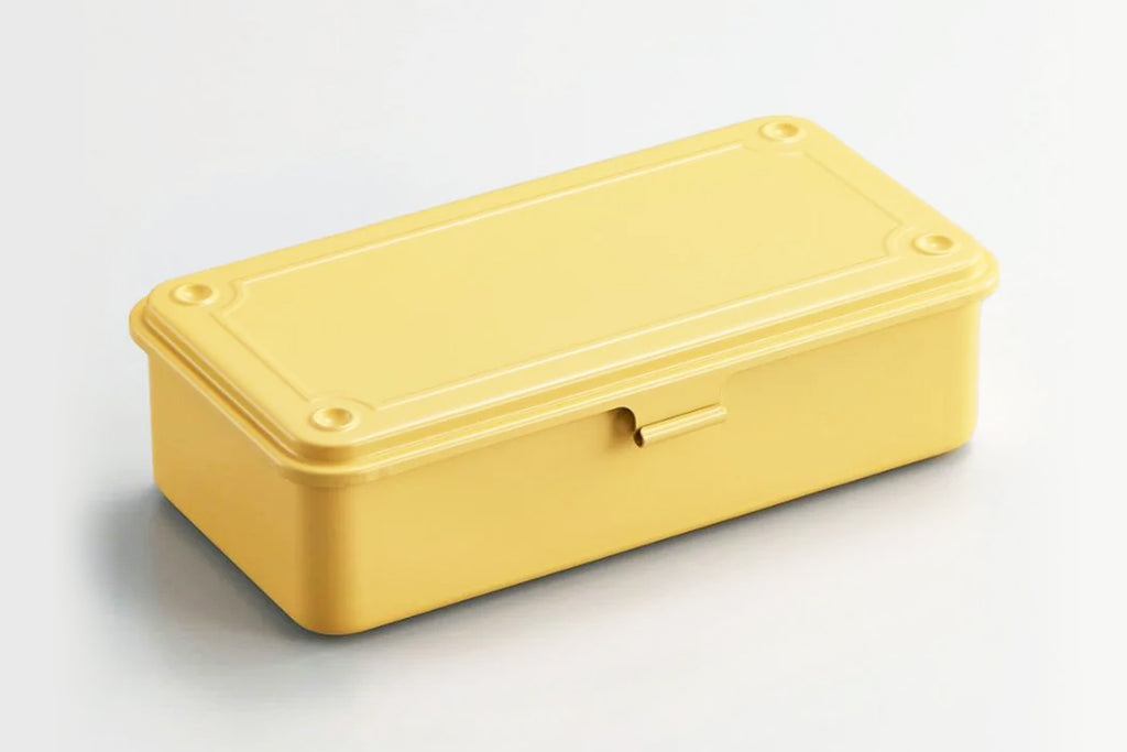 TOYO STEEL has been making high quality steel products in Japan since 1969. The T-190 Trunk Shape Toolbox is pressed from a single steel plate and is free of seams. This durable and functional storage box is perfect for organizing small items on your desk, from loose papers to writing accessories. Each box features dimples on the top cover and convex feet on the bottom for secure stacking.